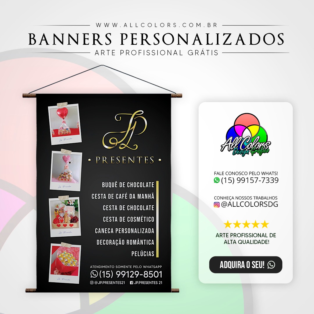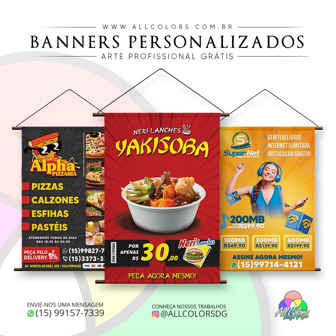 Explore nossa coleção de banners personalizados, projetados para capturar a atenção e comunicar sua mensagem de forma eficaz. Desde banners para eventos a sinalizações para lojas, nossos produtos são impressos com tecnologia de ponta para garantir cores vibrantes e durabilidade. Descubra opções que atendem às suas necessidades específicas e dê vida à sua comunicação visual com nossos banners de alta qualidade.