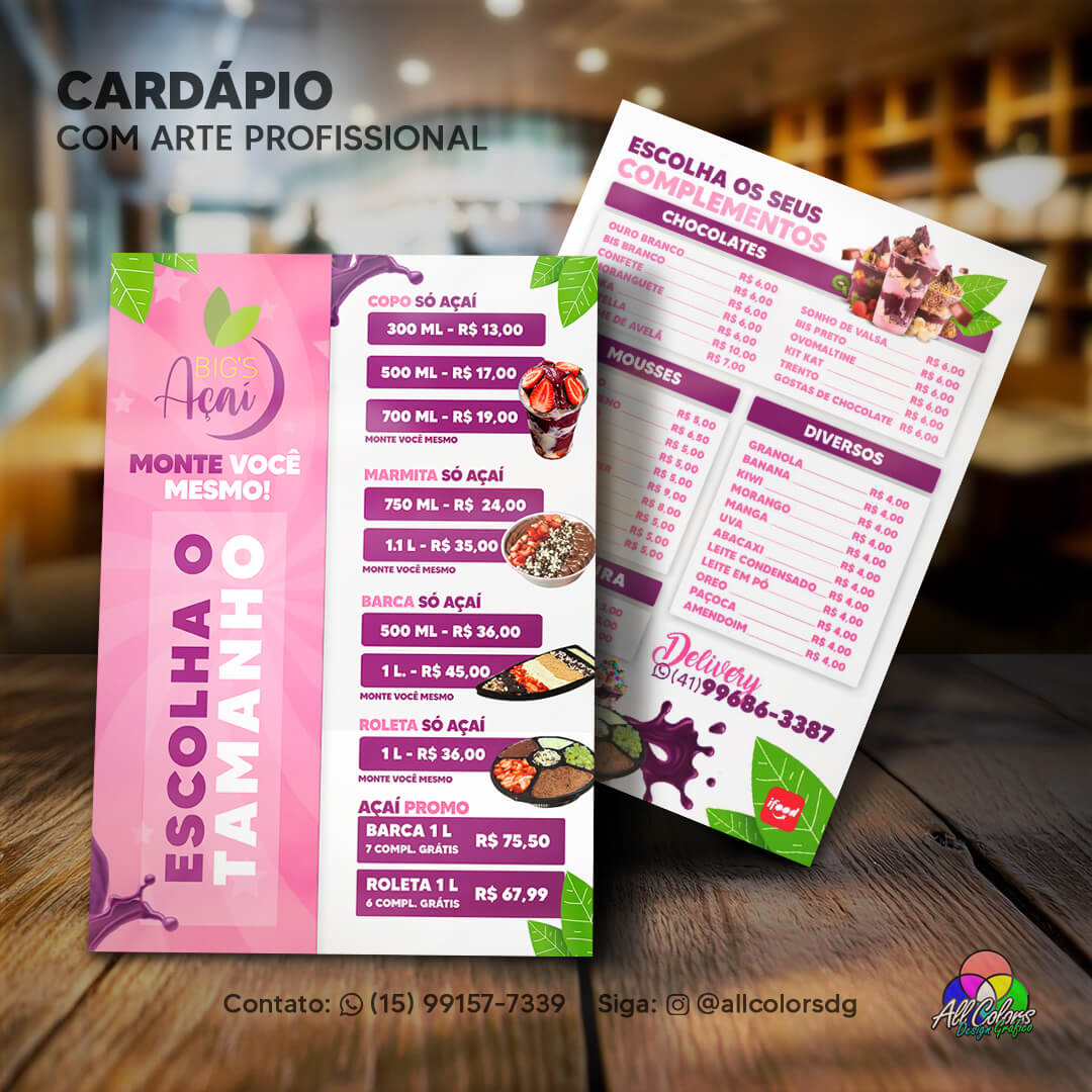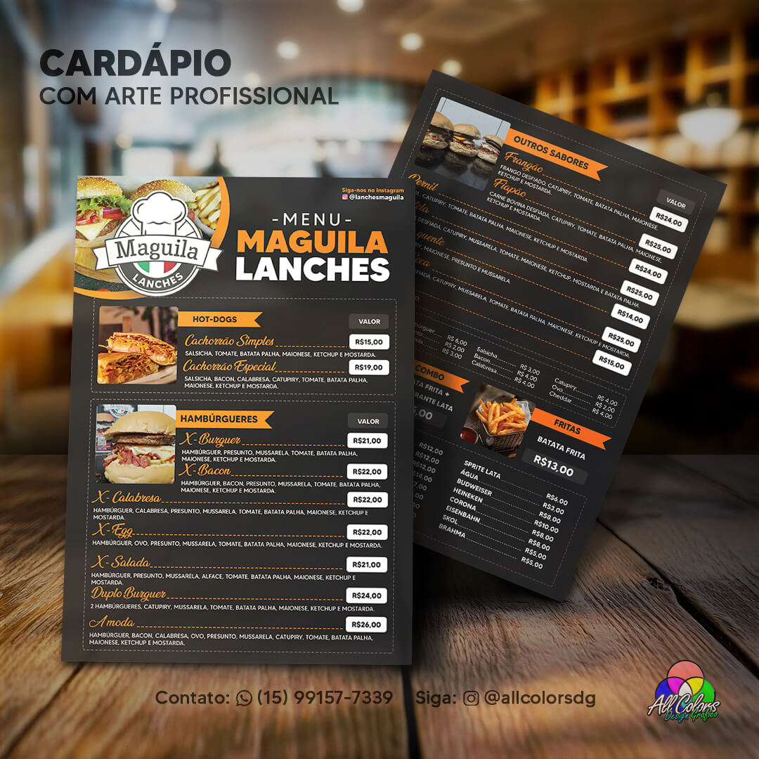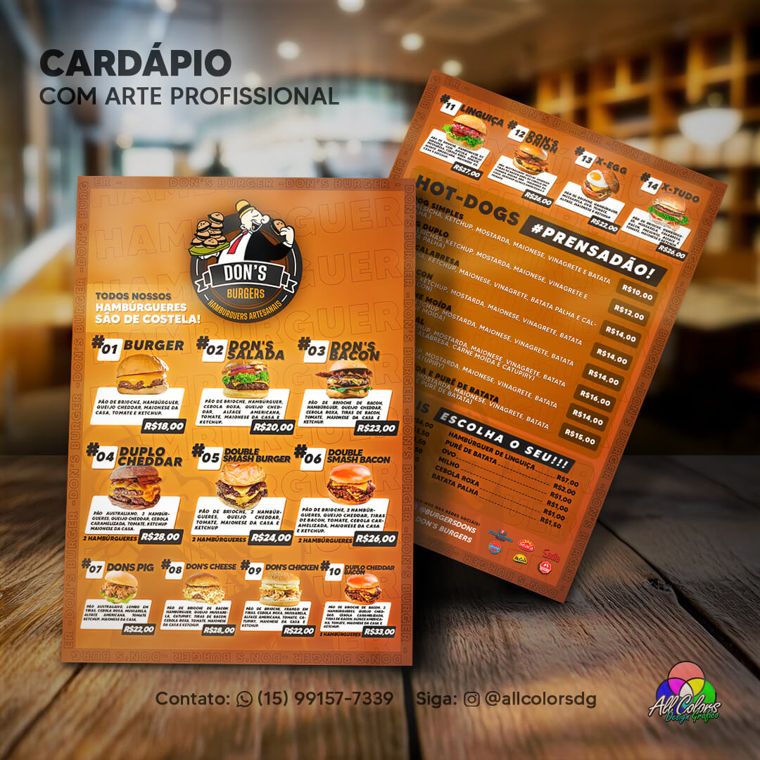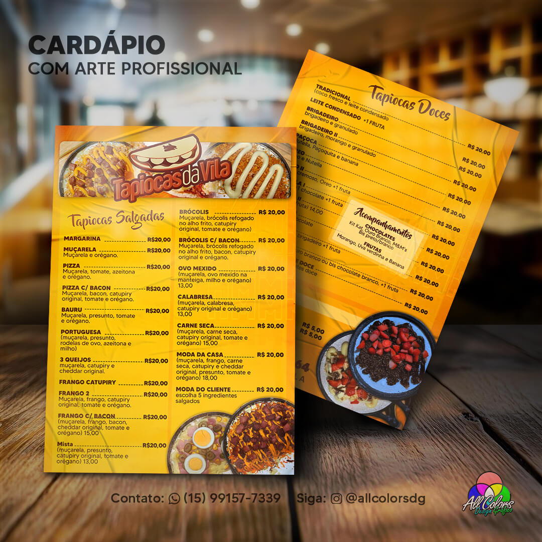 Apresente seus pratos com estilo e clareza com nossos cardápios personalizados. Ideal para restaurantes, cafés e eventos, nossos cardápios são projetados para destacar suas ofertas de forma atraente e organizada.