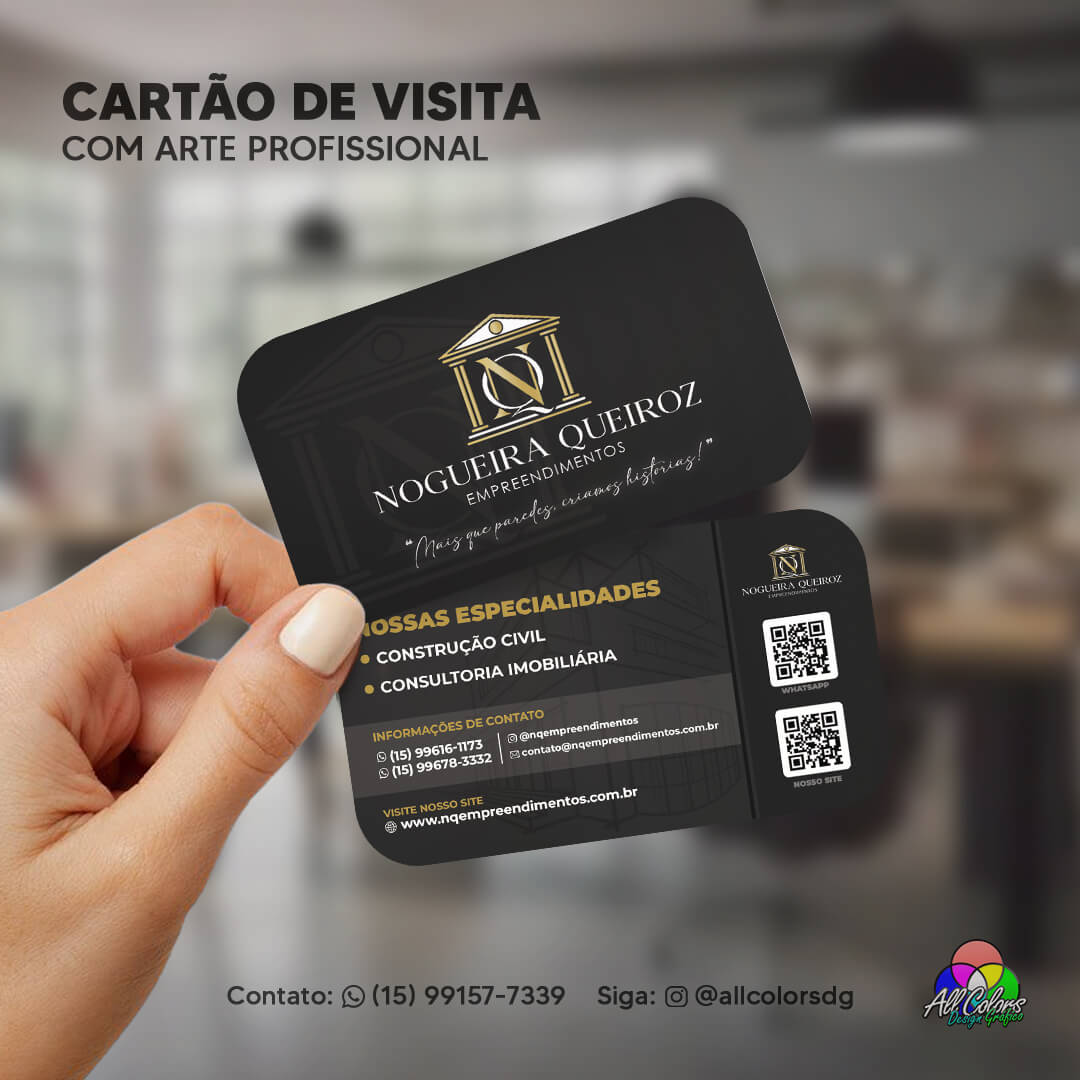 Cada cartão é criado utilizando técnicas avançadas de design e impressão, assegurando que sua identidade e visão se destaquem com precisão e clareza.